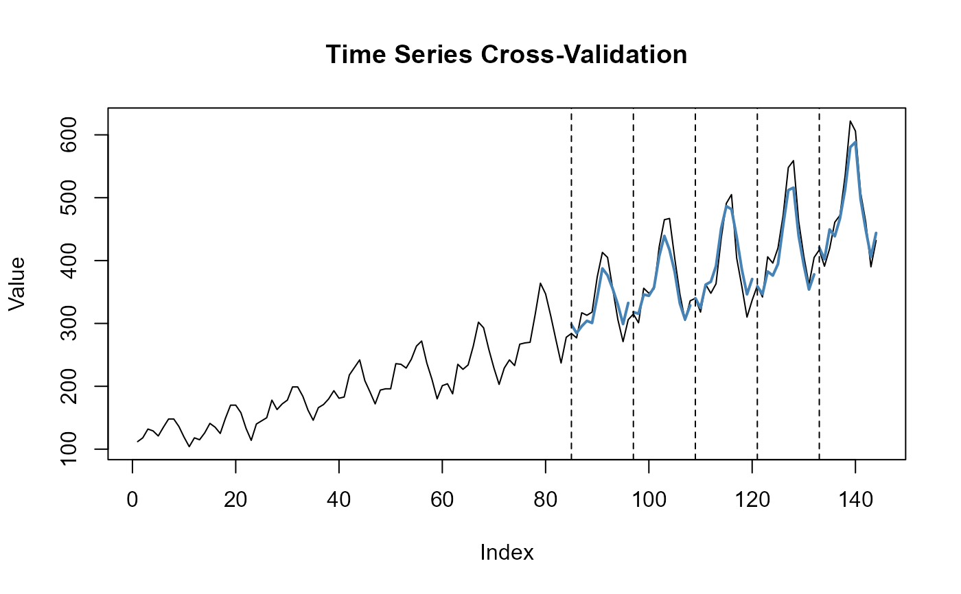 time series cross-validation (i.e., rolling forecast). The input series is